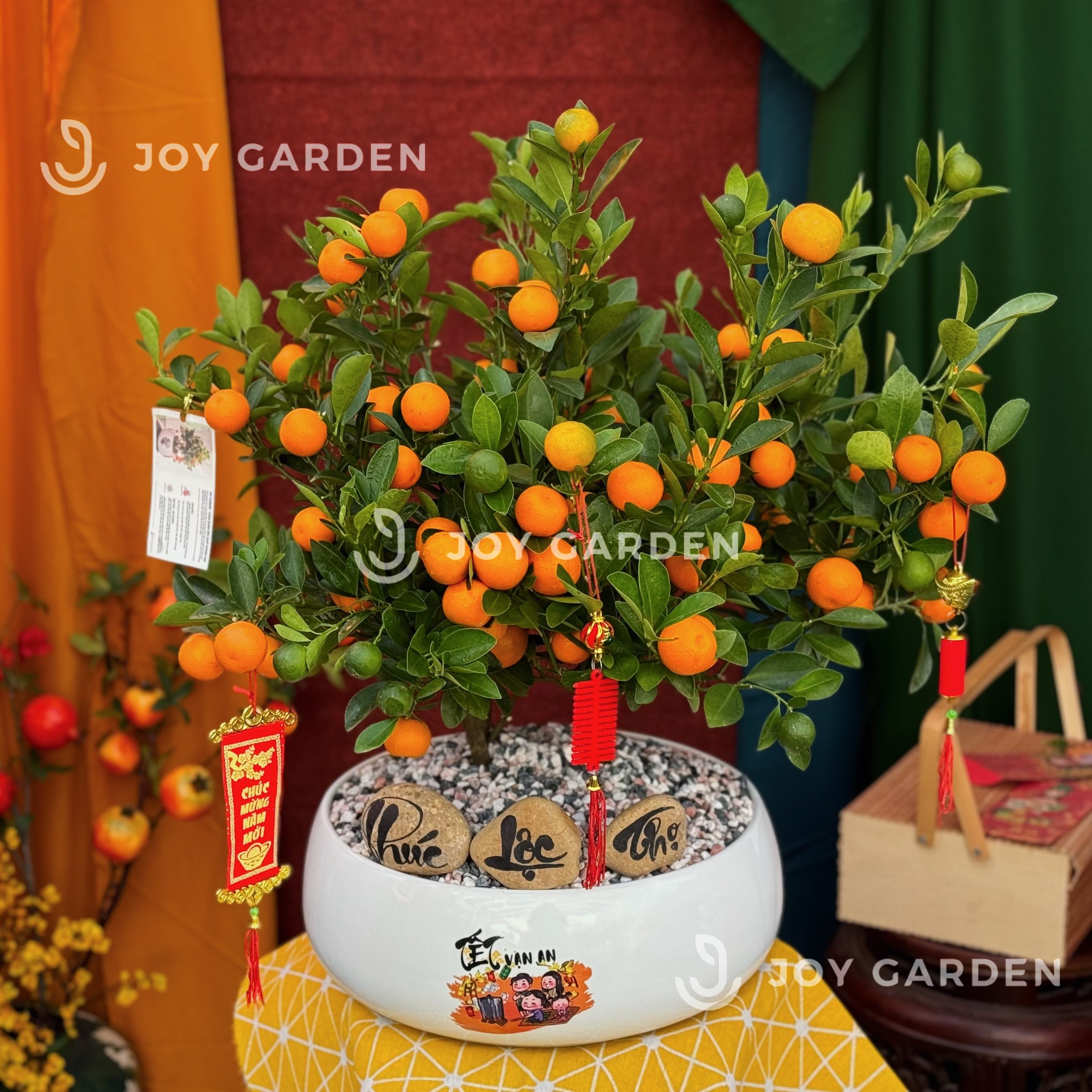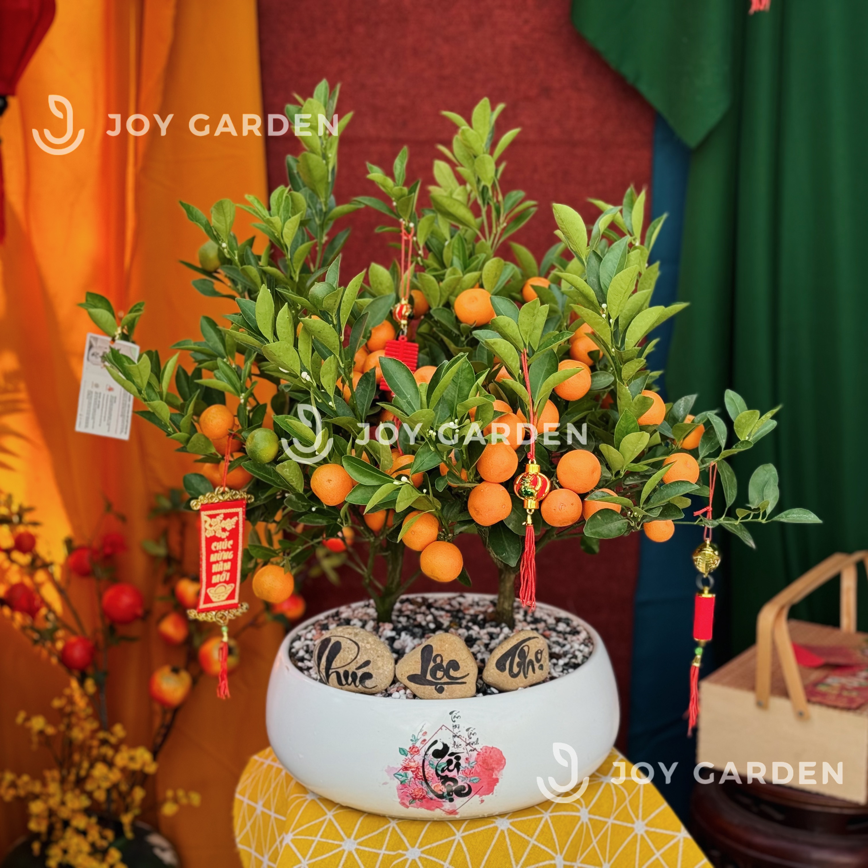 • Cây quất tự nhiên nên mỗi cây sẽ có dáng khác nhau, quý khách vui lòng liên hệ Facebook hoặc Zalo Joy Garden để chọn cây thực tế tại vườn.
