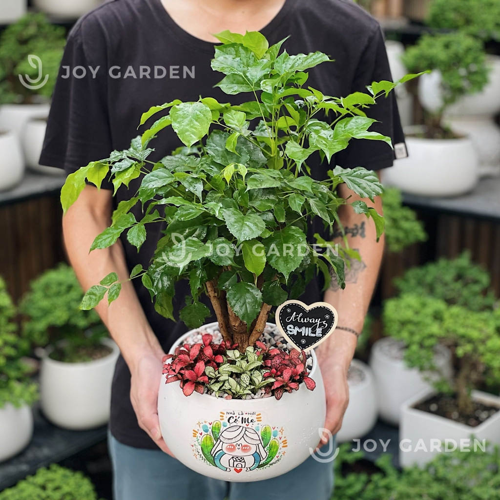 Hạnh phúc là cây có nguồn gốc từ rừng nhiệt đới tại Trung Quốc và Đông Nam Á, lá cây có hình trái tim, và tán lá rất dày thể hiện sự đầm ấm, sum vầy. Thích hợp làm quà tặng cho người thân, ba mẹ, sếp, người lớn,...
