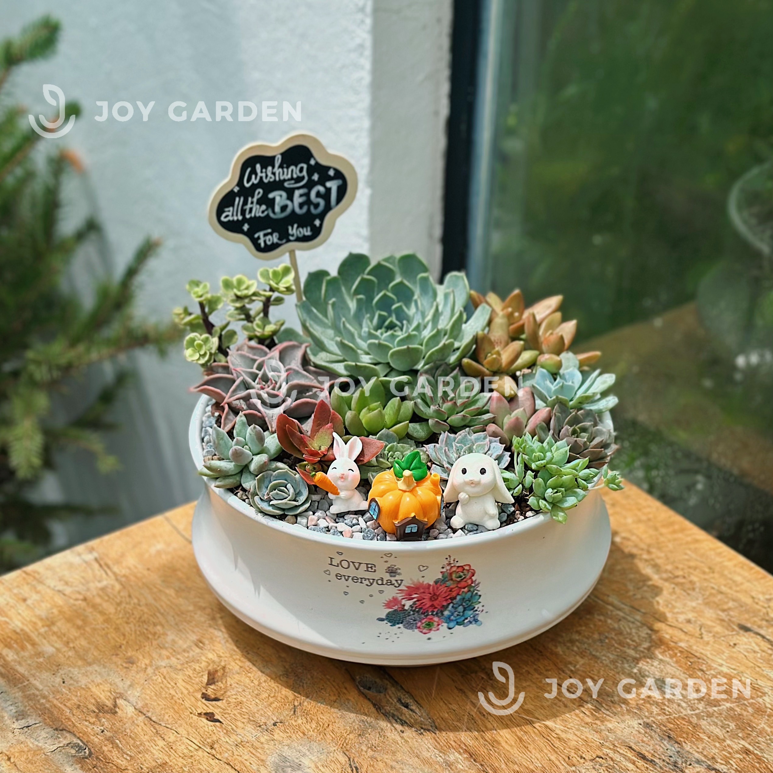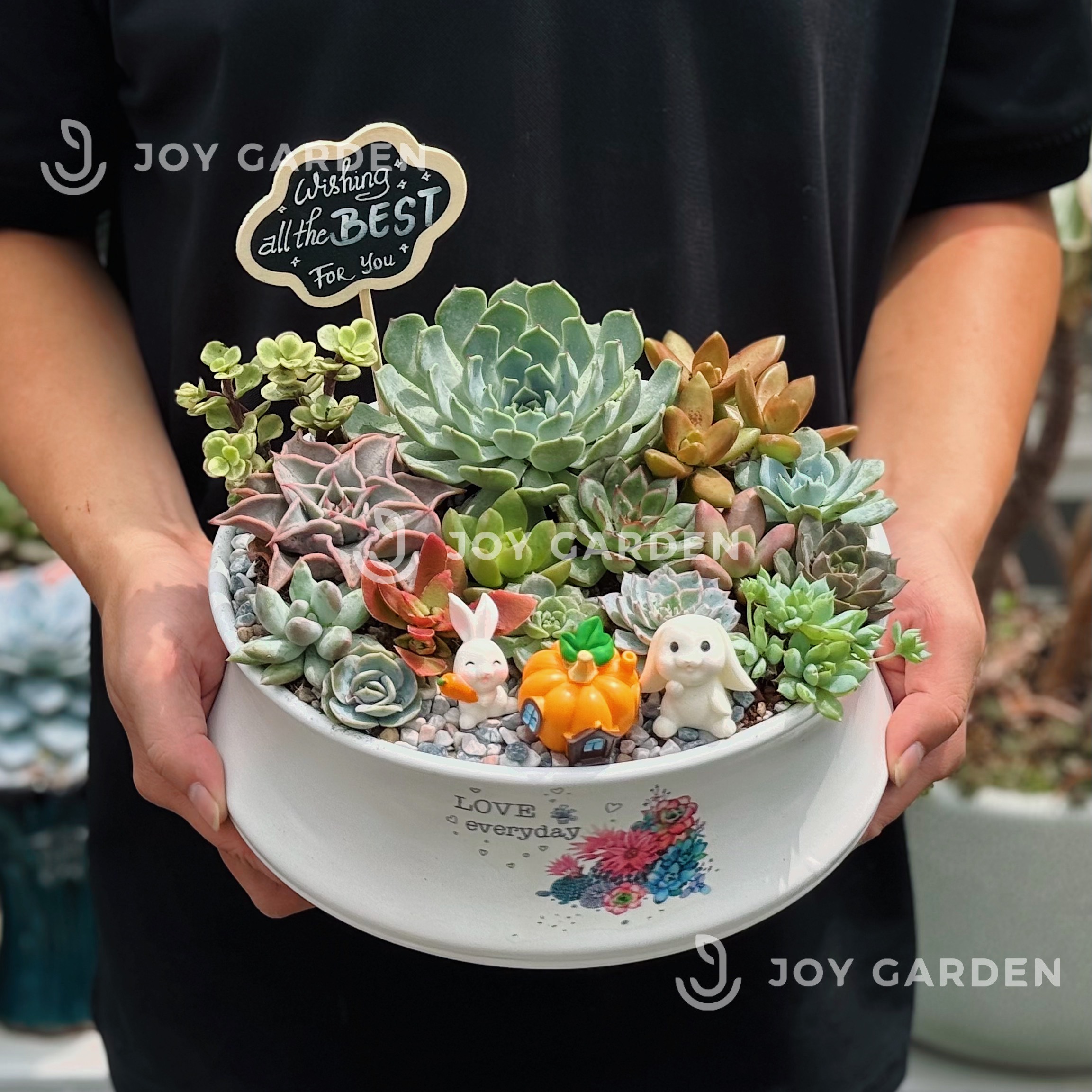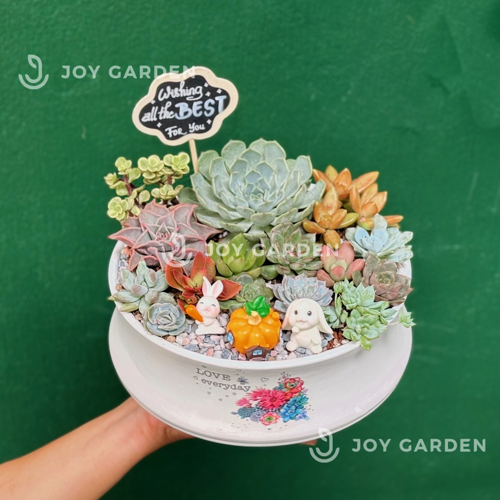 Succulents symbolizes love, friendship, strength and bravery to face all challenges in life, so it is often used to give birthday gifts, anniversaries, ... or used to mix with other plants as miniatures to place on your working space.
