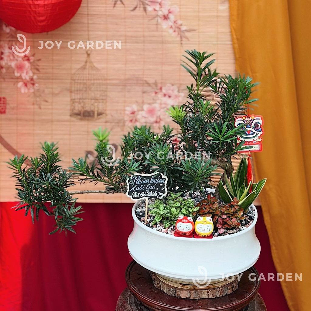 Cây Tùng Vạn Niên (Tùng La Hán) là loại cây thân gỗ sống lâu năm, có nguồn gốc từ Trung Quốc và Nhật Bản. Lá cây vạn niên tùng có màu xanh quanh năm, hình thon dài, mọc đối xứng hoặc xen kẽ trong rất đẹp mắt. Chính sức sống bền bỉ mà loài cây này được coi là biểu tượng cho sự phồn vinh, thịnh vượng và may mắn.